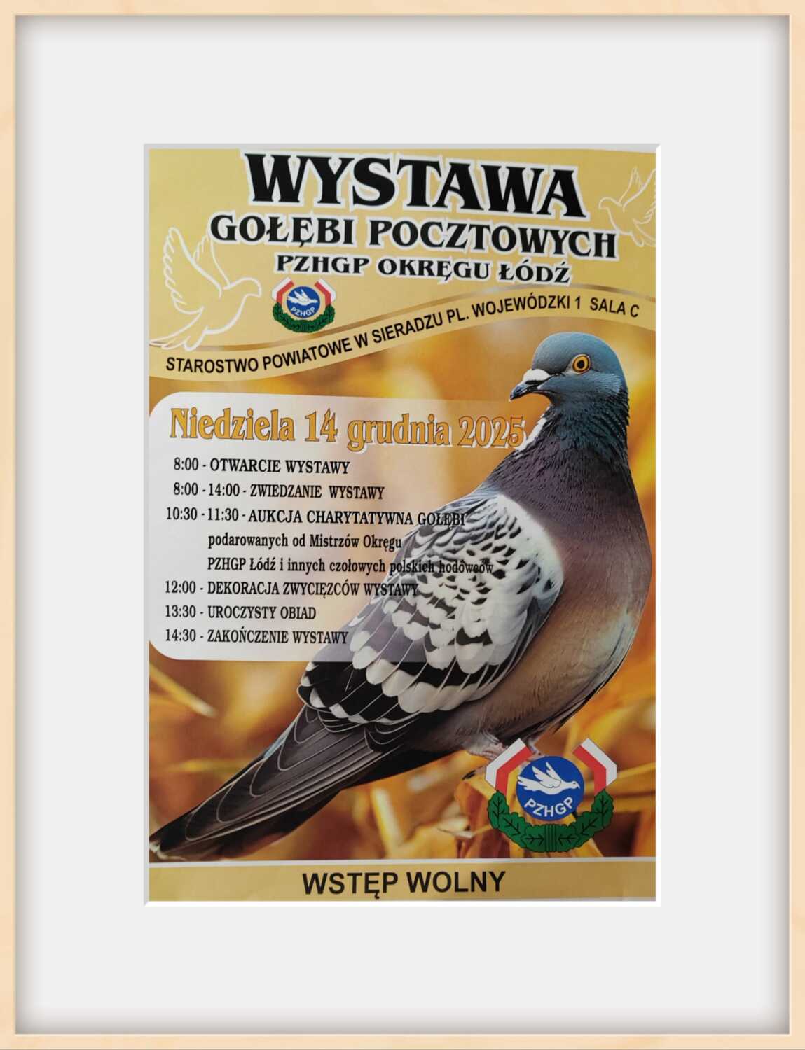 Oddział zgłasza gołębie na wystawę do 21 listopada 2025 do Prezesa ds. Lotowych Oddziału.